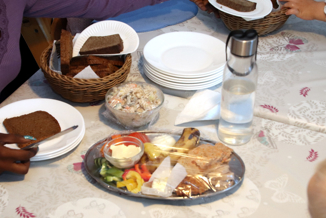 Torsdag: Rugbrød med tre slags pålæg og grønt.