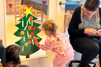 Vi har juleværksteder forskellige steder i huset, hvor børnene laver julepynt til huset, juletræet og julegaver.